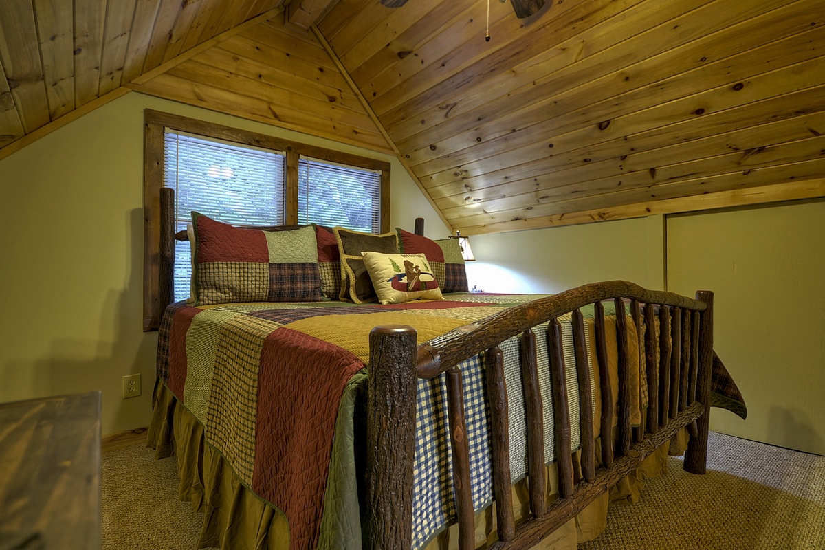 The upper level offers a separate and private King Bedroom Suite with an attached bathroom. This bedroom also has a 32" Flat Panel TV.