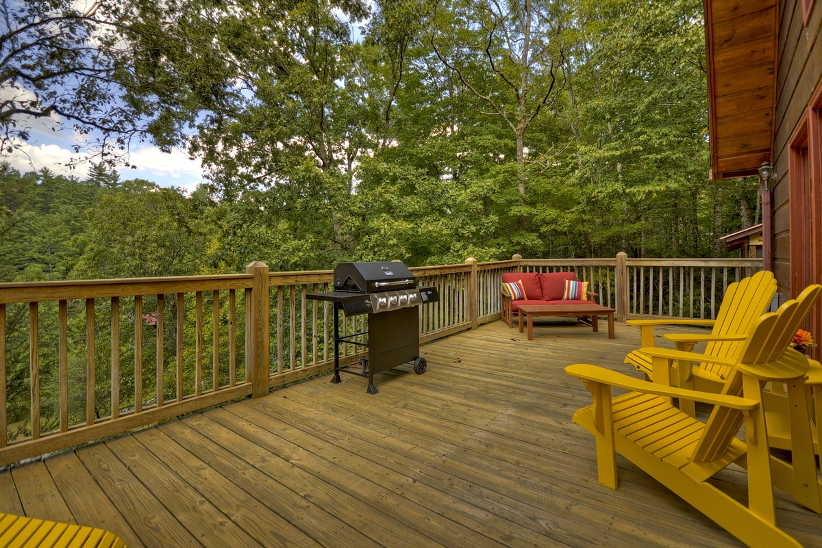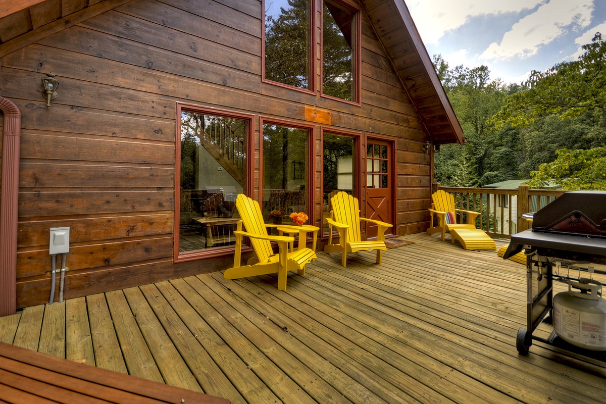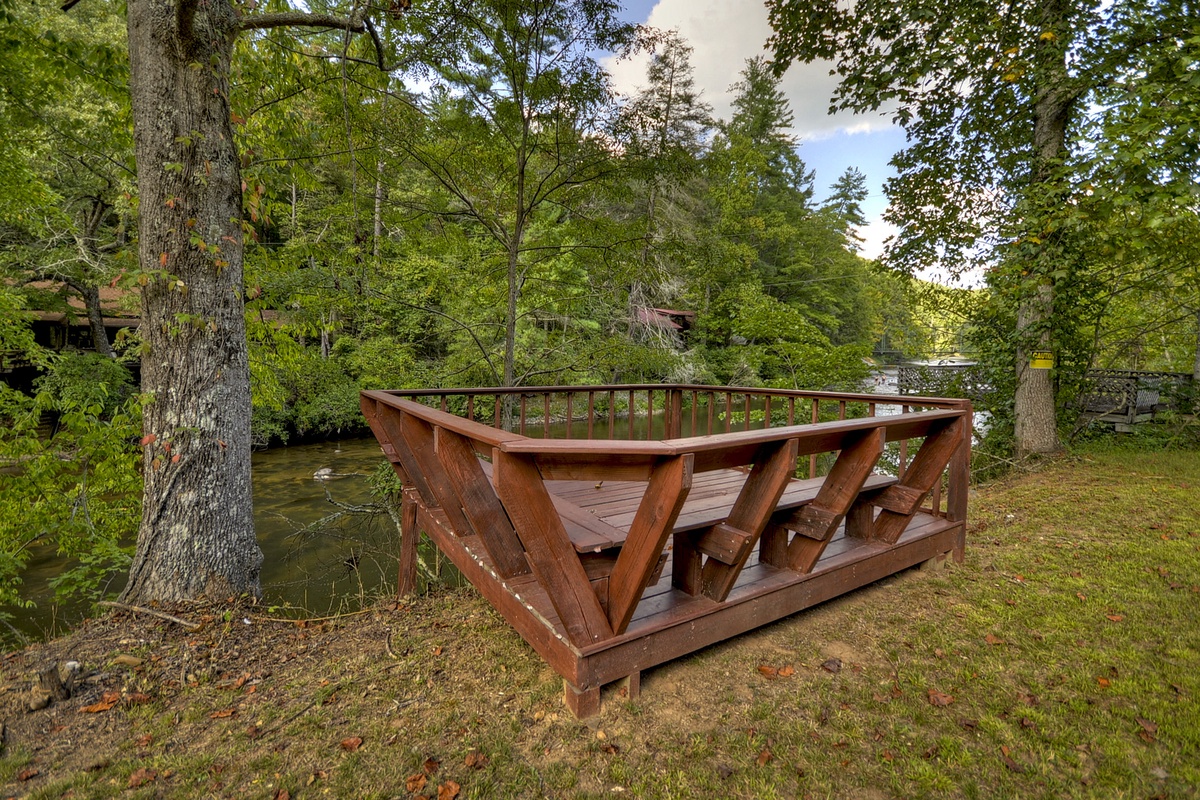 - Private Deck on the Toccoa River - Please note that the deck is conveniently located just across the road from the cabin. Access is easy, with a short drive from the cabin