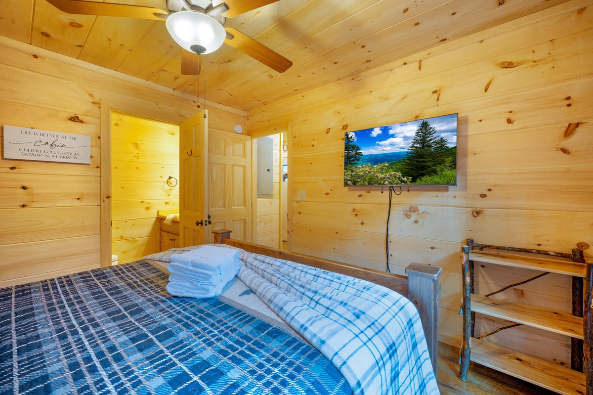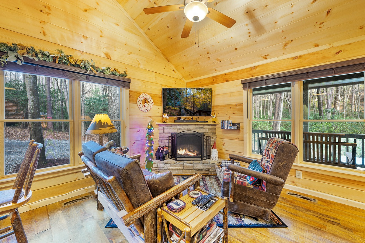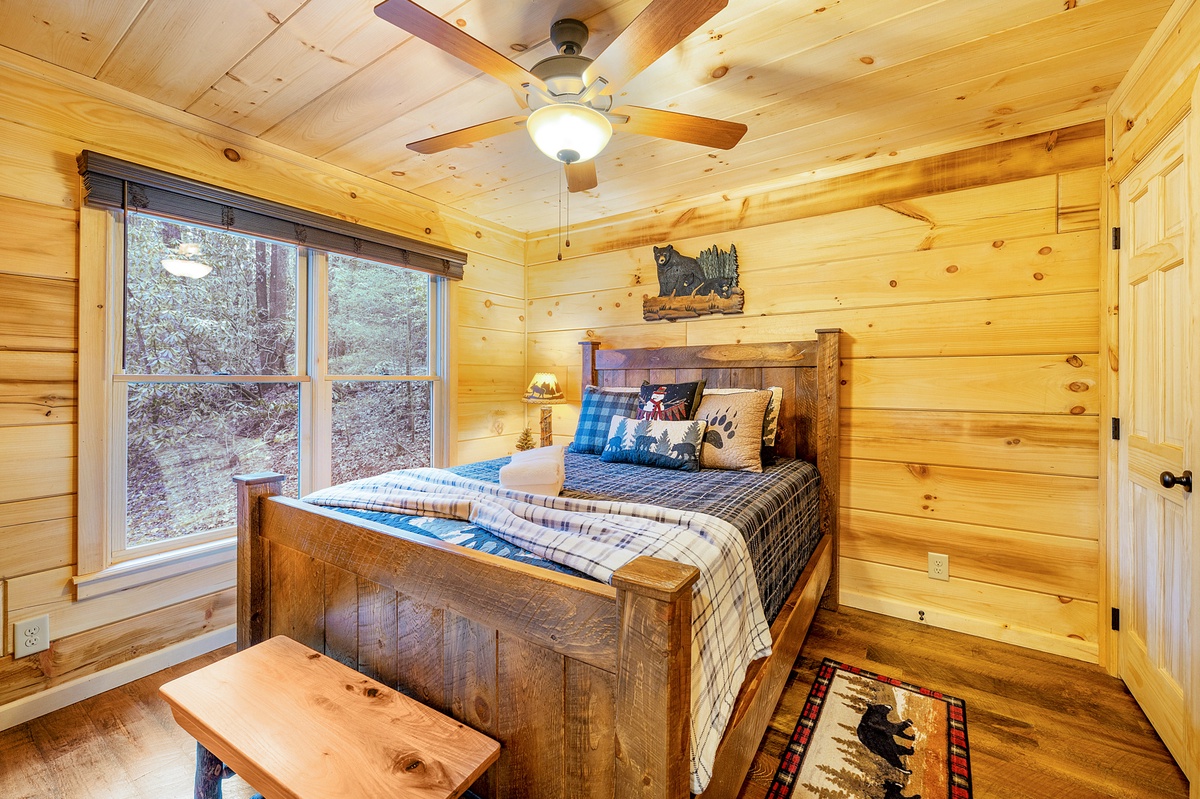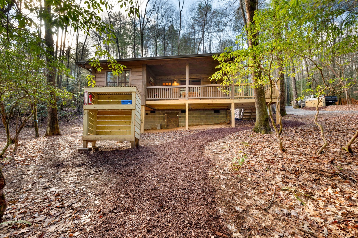 Plan a honeymoon, anniversary trip, or romantic weekend away in this lovely cabin located just a few miles from downtown Blue Ridge with the Benton MacKaye Trail running through the property. Boasting natural pine interiors, charming mountain décor and the comforts of home, you’ll find tranquility waiting with peaceful, open arms.