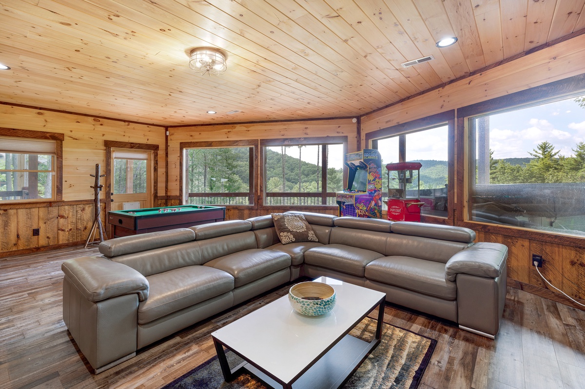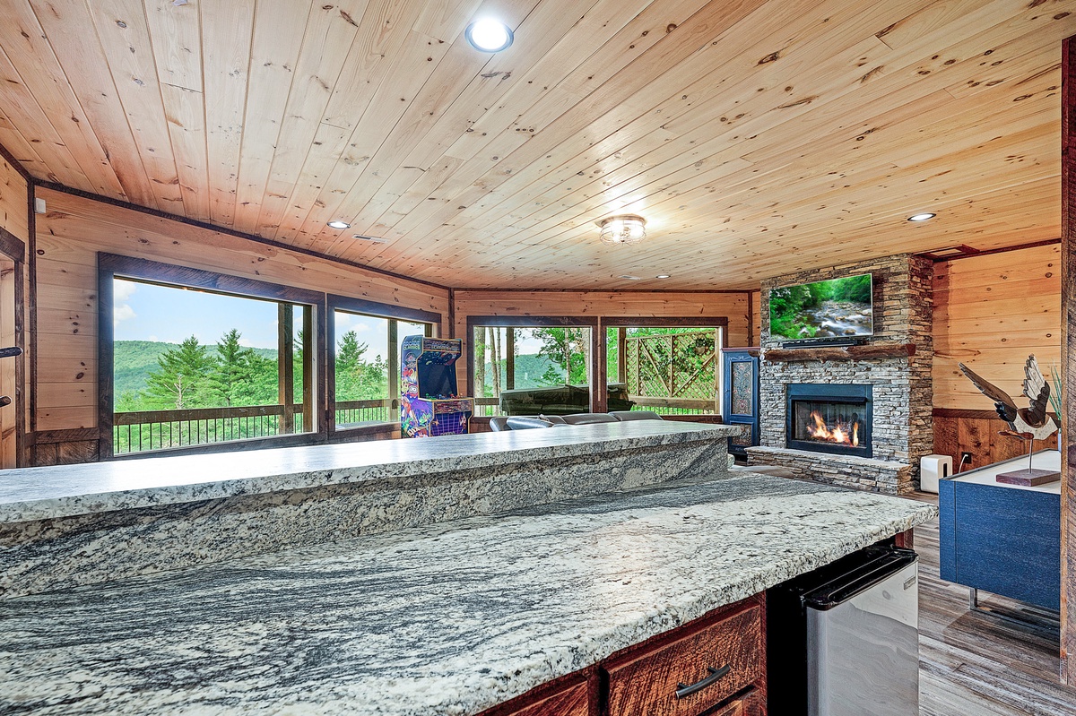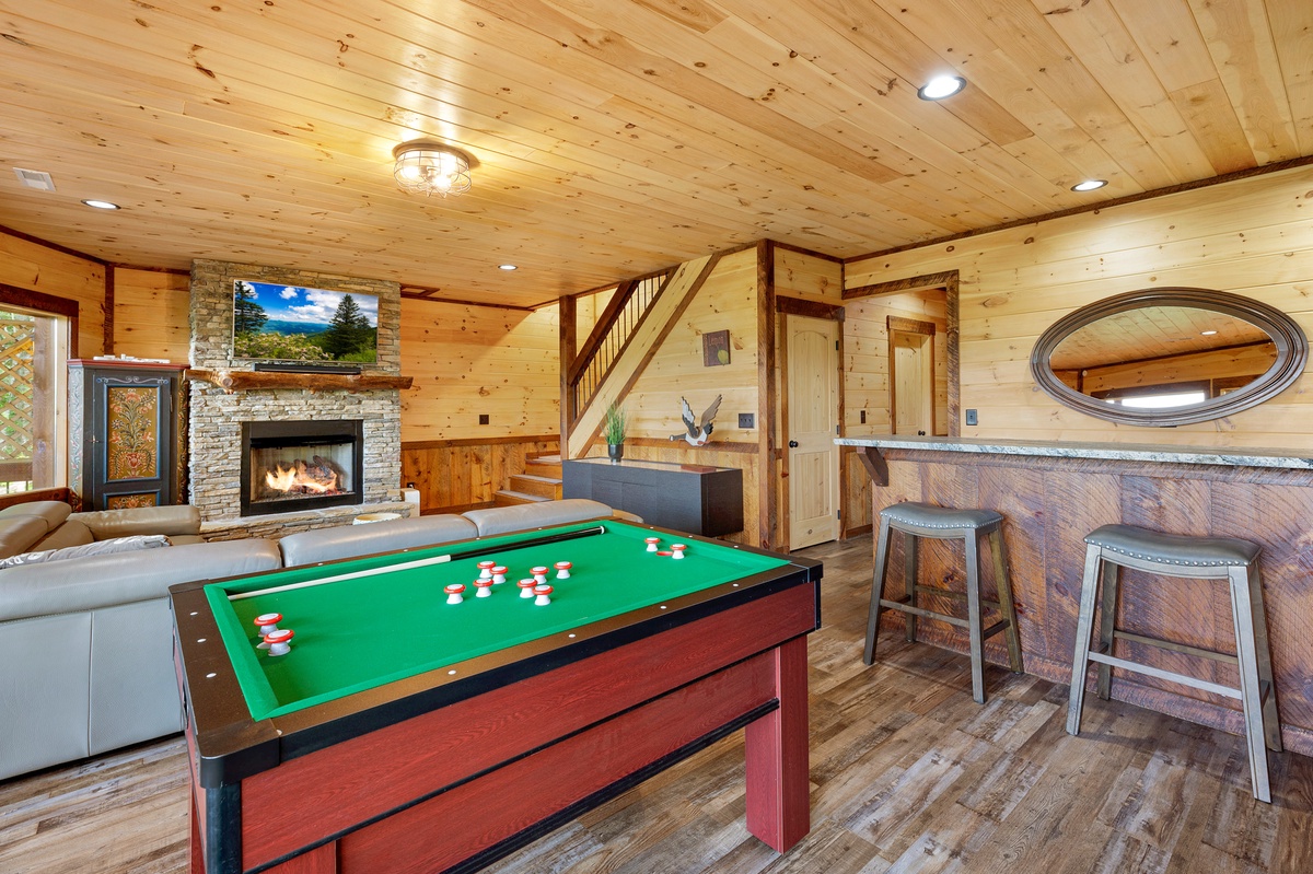 On those rainy days or down times, you can still find opportunities to enjoy yourselves in the lower-level living room with its arcade console, bumper pool table, wet bar and TV.