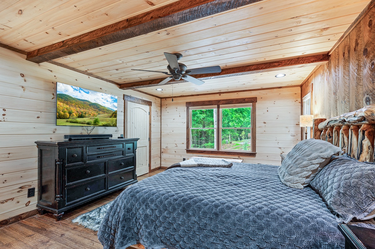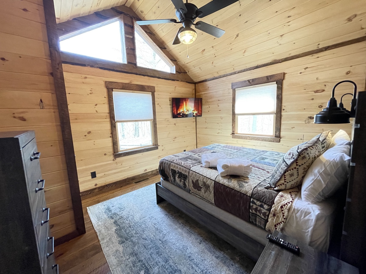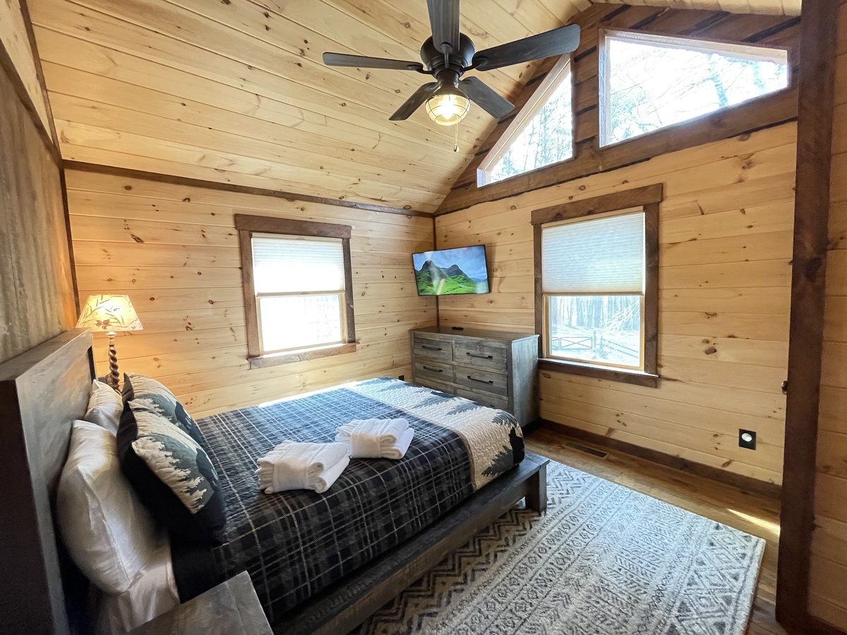 - Queen bedroom with dresser, closet and 33” TV