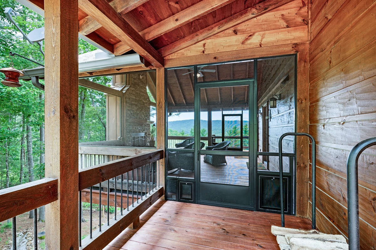 - Screened wood burning fireplace area with seating for 4