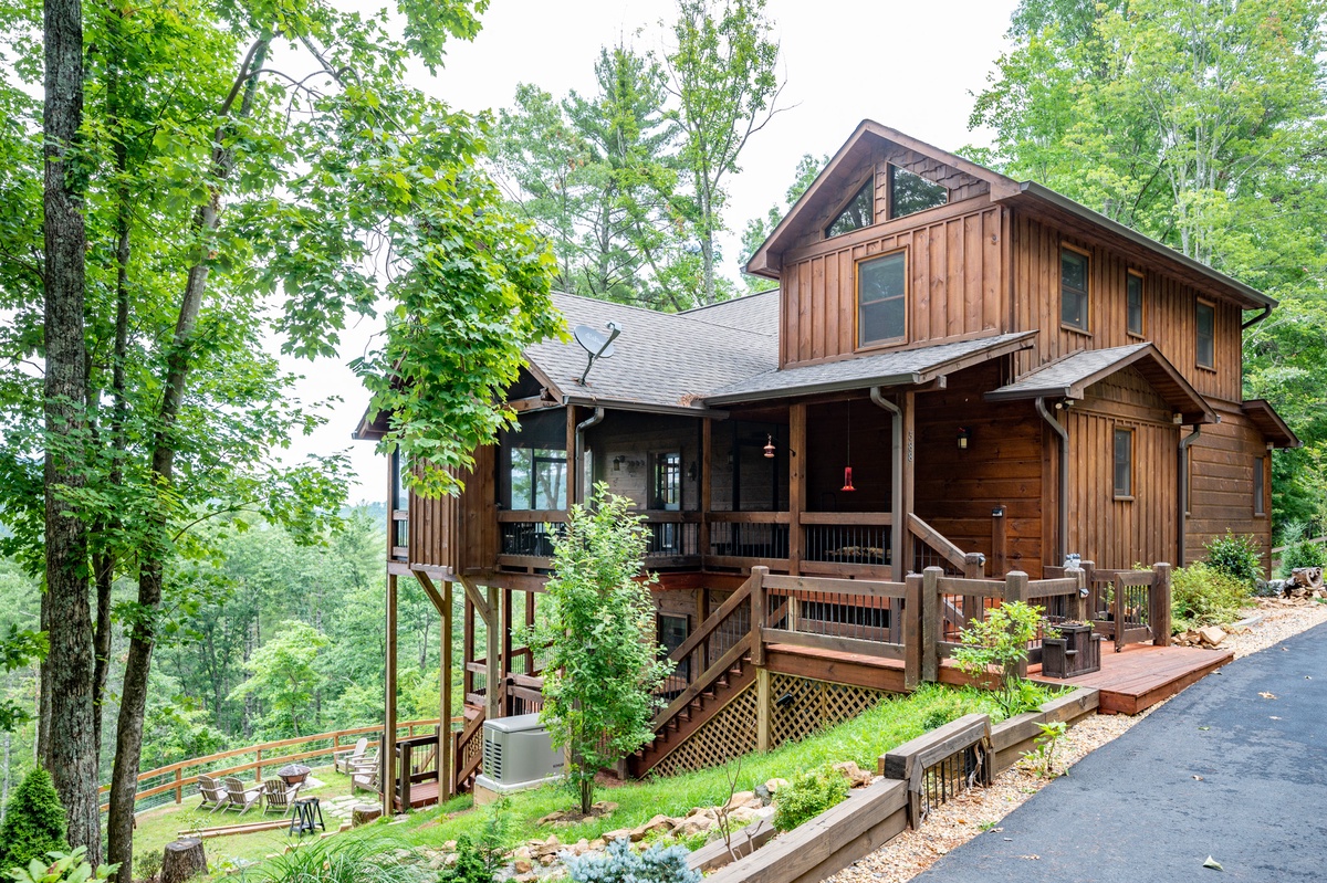 In the heart of Aska Adventure Area, with its gorgeous mountain views, is where you will find yourself when you arrive at Tyson’s Peak. Whether you arrive during the summer with its green leaves swaying in the gentle, cool mountain breeze or in the fall with the multitude of colors dazzling your eyes around the cozy outdoor fireplace, you’ll know you made the right choice from all of the hugs and smiles you see on your family’s faces.