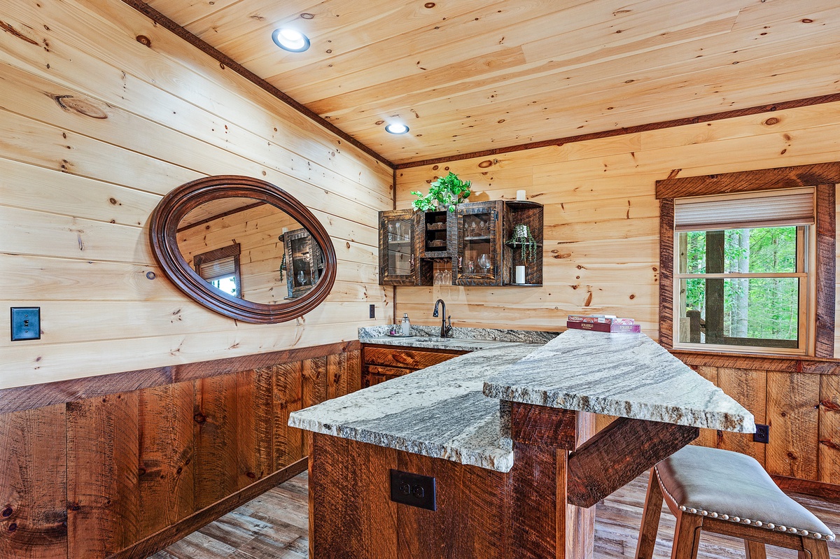 - Wet bar with seating