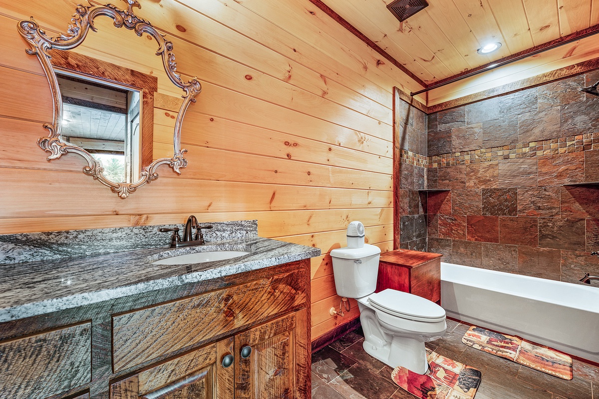 - Shared bathroom with shower/tub combo