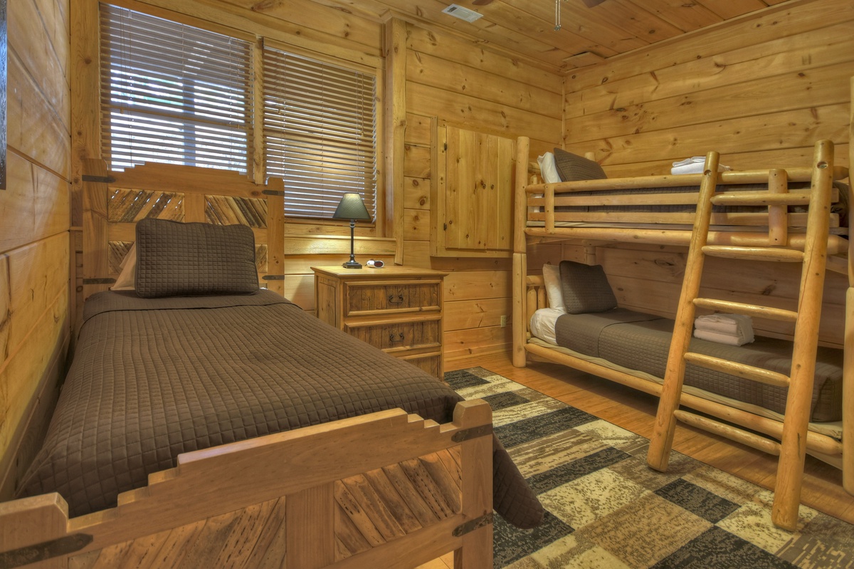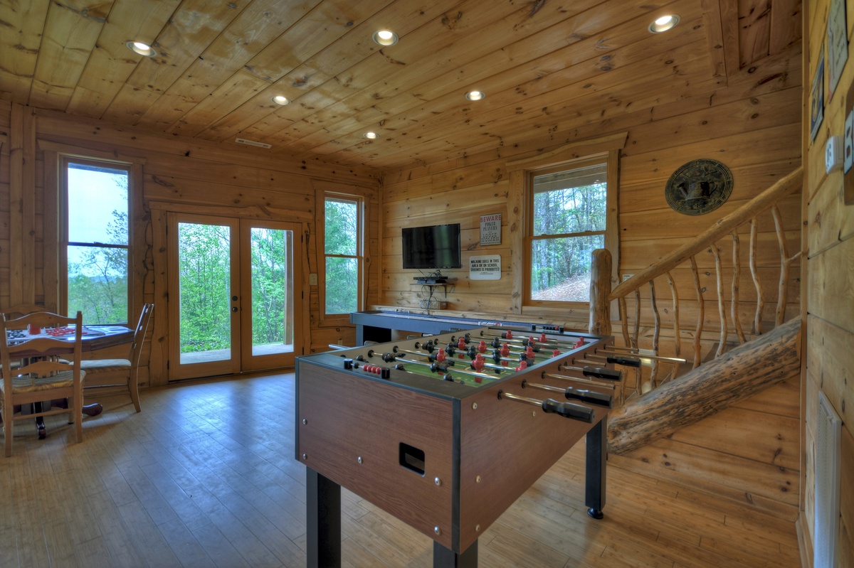 When bedtime rolls around, there are plenty of choices for sleeping, with 5 bedrooms and a loft to choose from! Each of the 3 levels offers a bathroom. Don't forget the lower level offers a room made just for fun! The game room has all of your recreational needs in mind, offering a card table, foosball, table shuffleboard and a flat panel TV. This cabin is easily the best for an ultimate family experience.