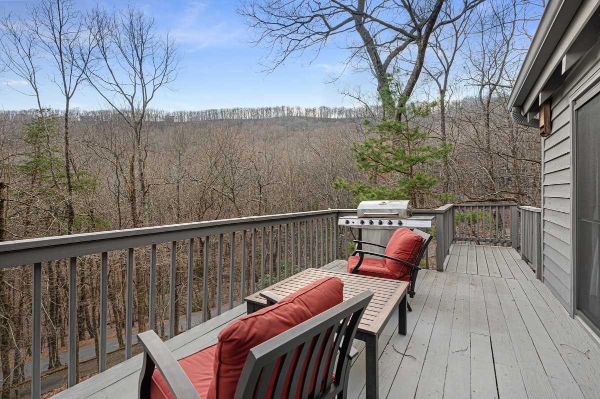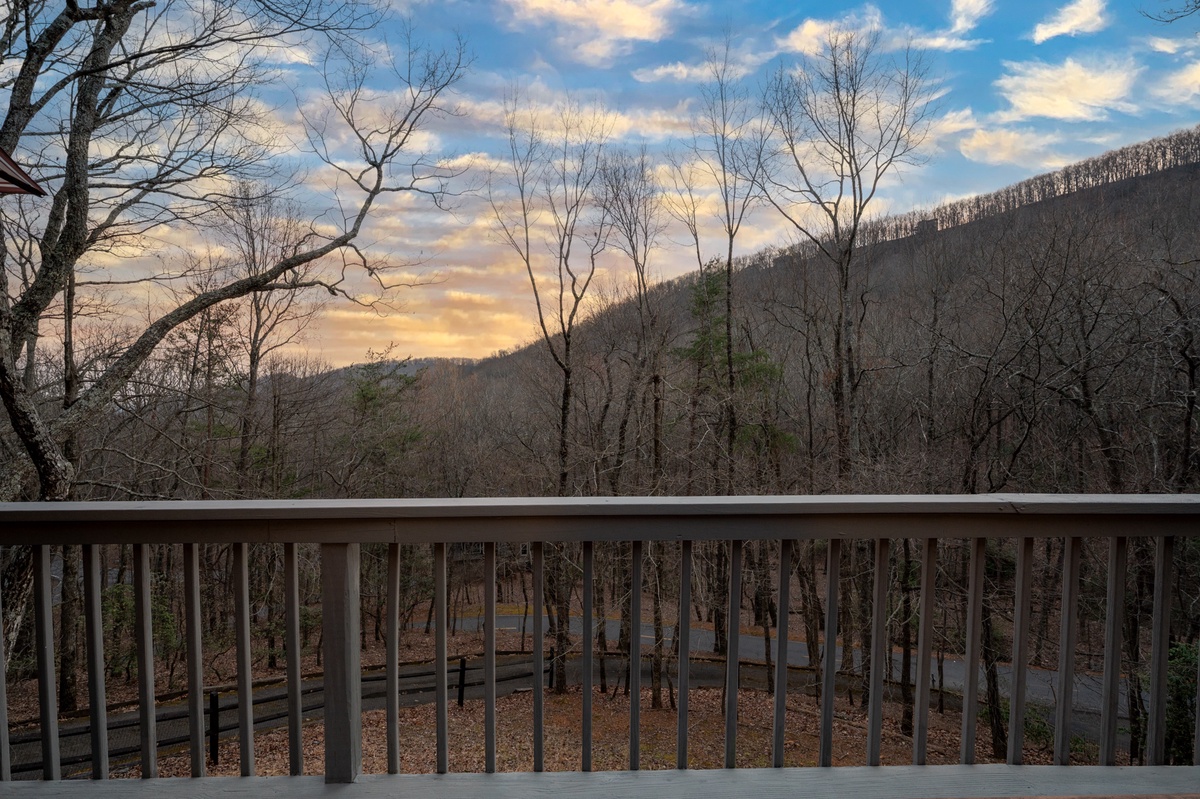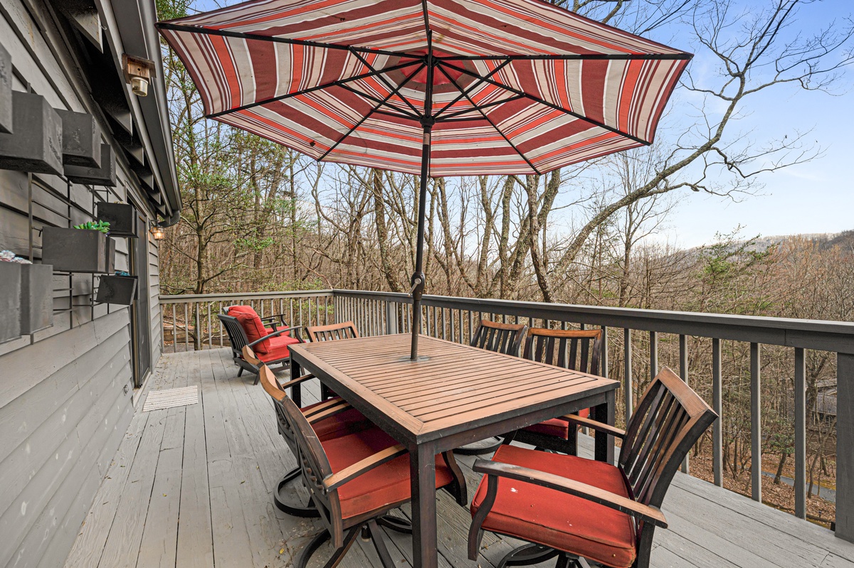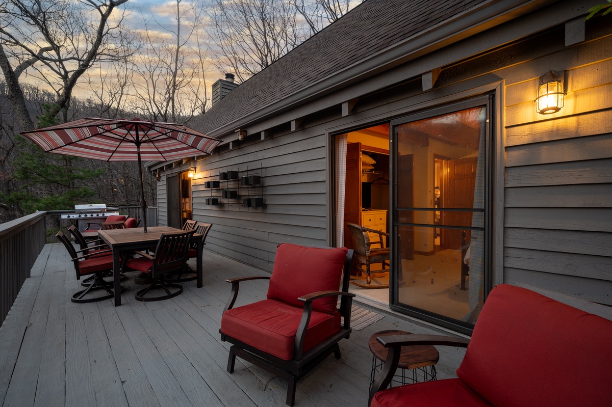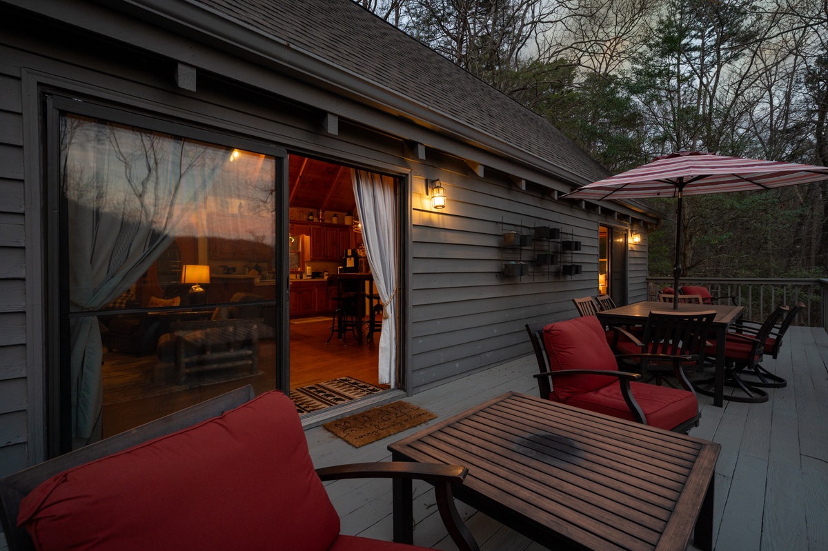 Outdoor living is one of the highlights of Wanderer's Den. Multiple decks and porch spaces allow guests to relax and enjoy the natural beauty of Big Canoe.