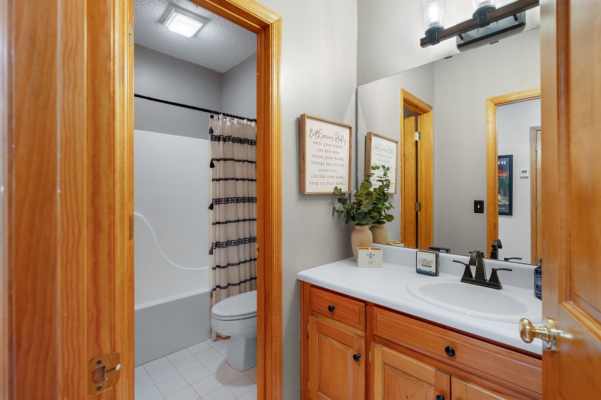 - Shared full bathroom on lower level
