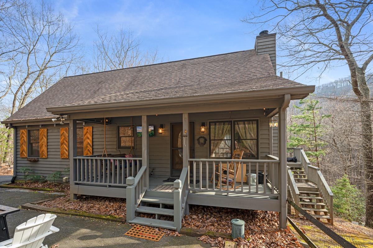 - Front porch with porch swing and rocking chair
