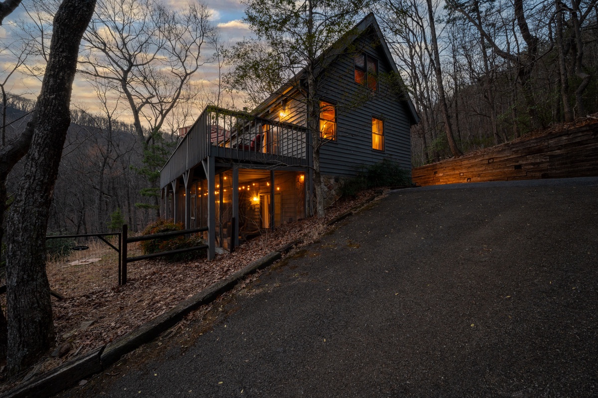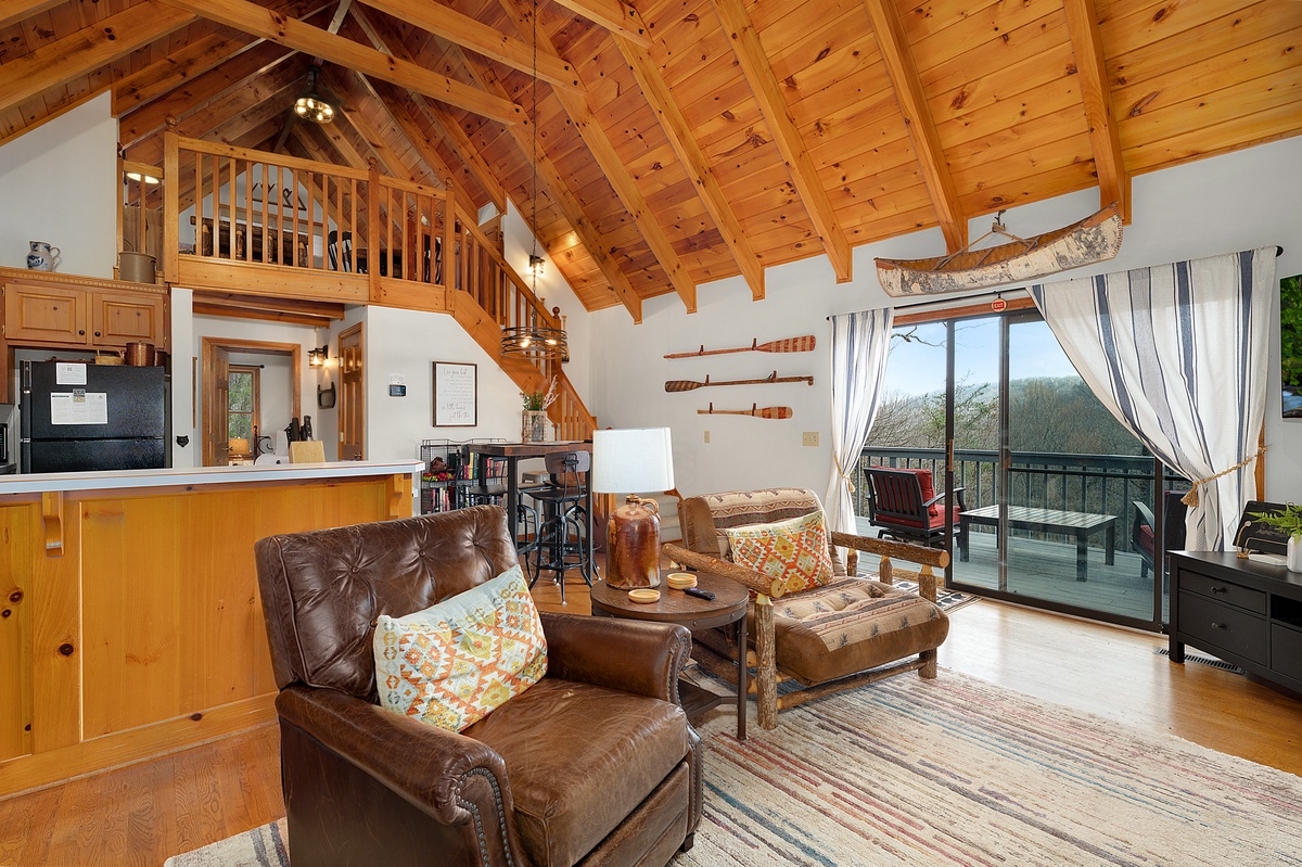 Designed with relaxation in mind, Wanderer's Den features three spacious king bedrooms, comfortable gathering spaces, and multiple outdoor decks where guests can unwind and enjoy the mountain air.