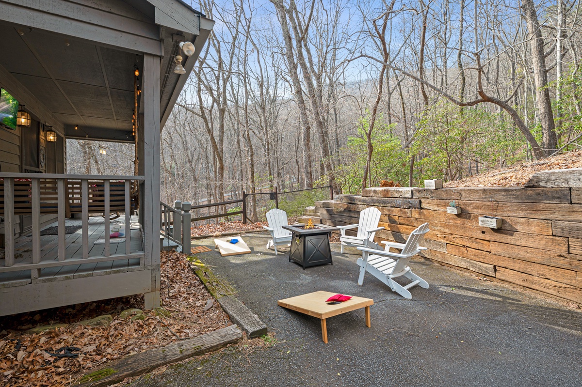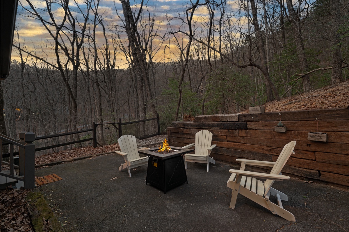 - Fire table with Adirondack chairs for evening gatherings