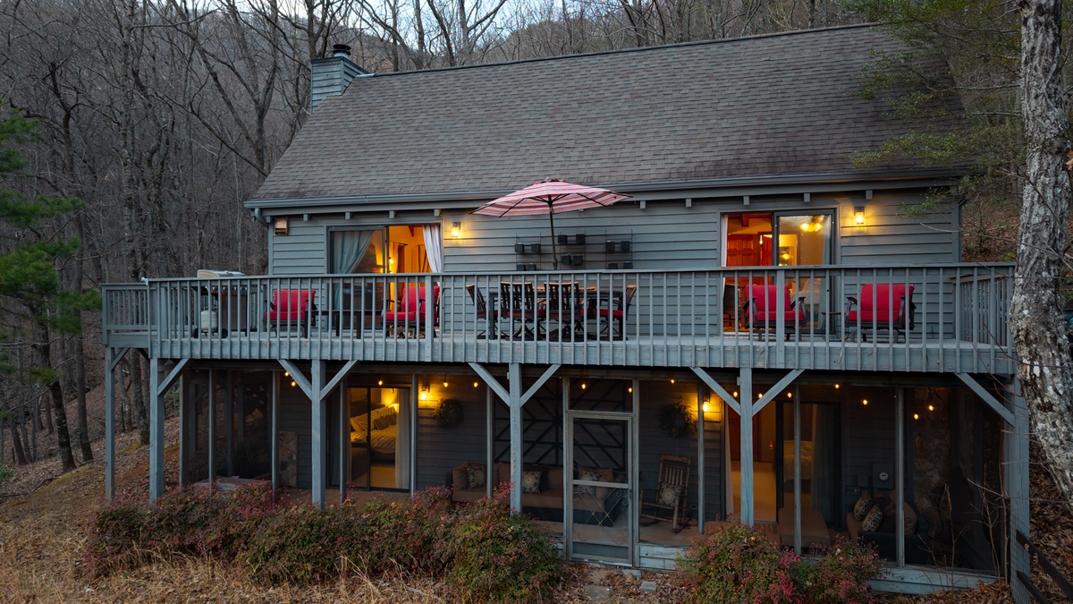 - Screened-in lower deck for peaceful relaxation