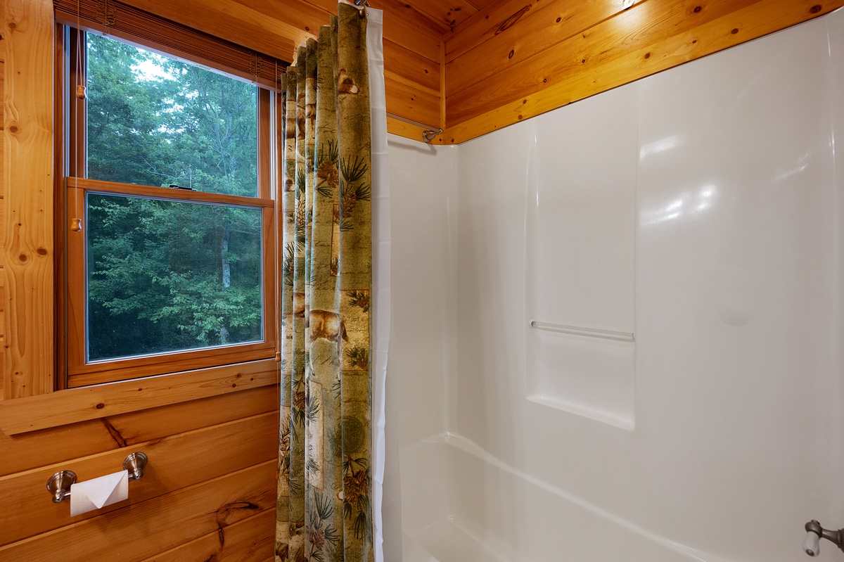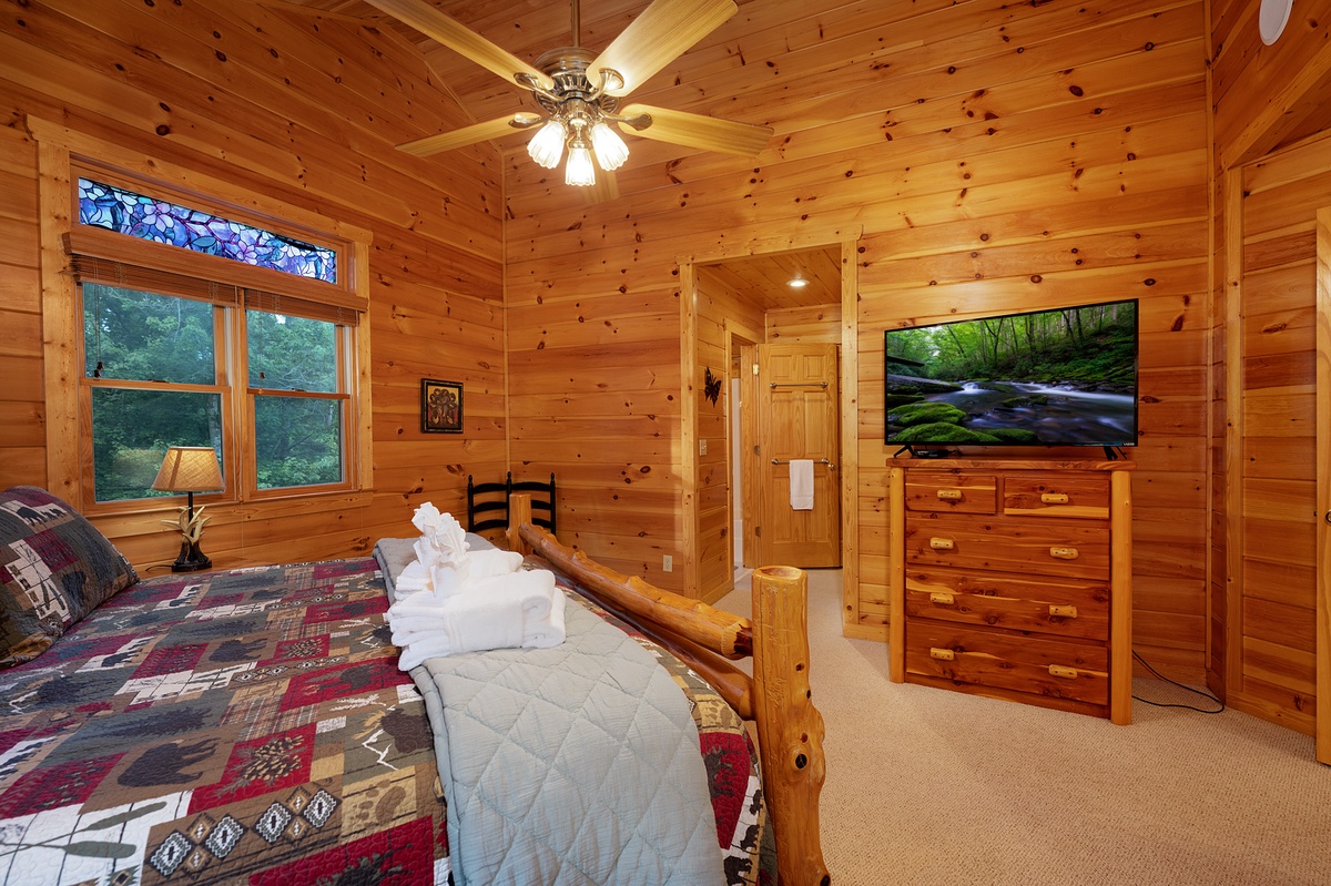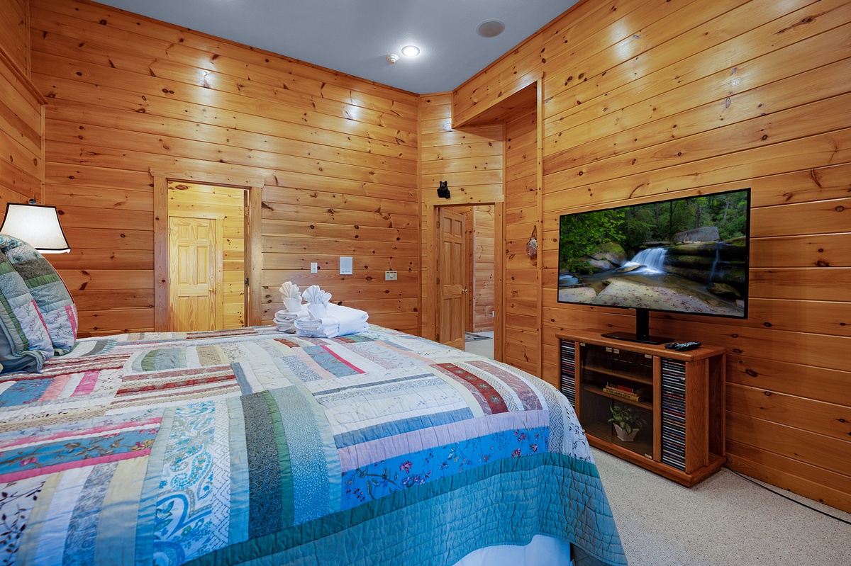 - King Bedroom with Vizio 4K 48" Flat Panel TV and attached bathroom with Tub/Shower combo