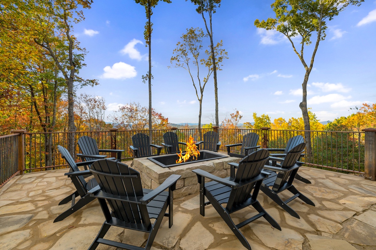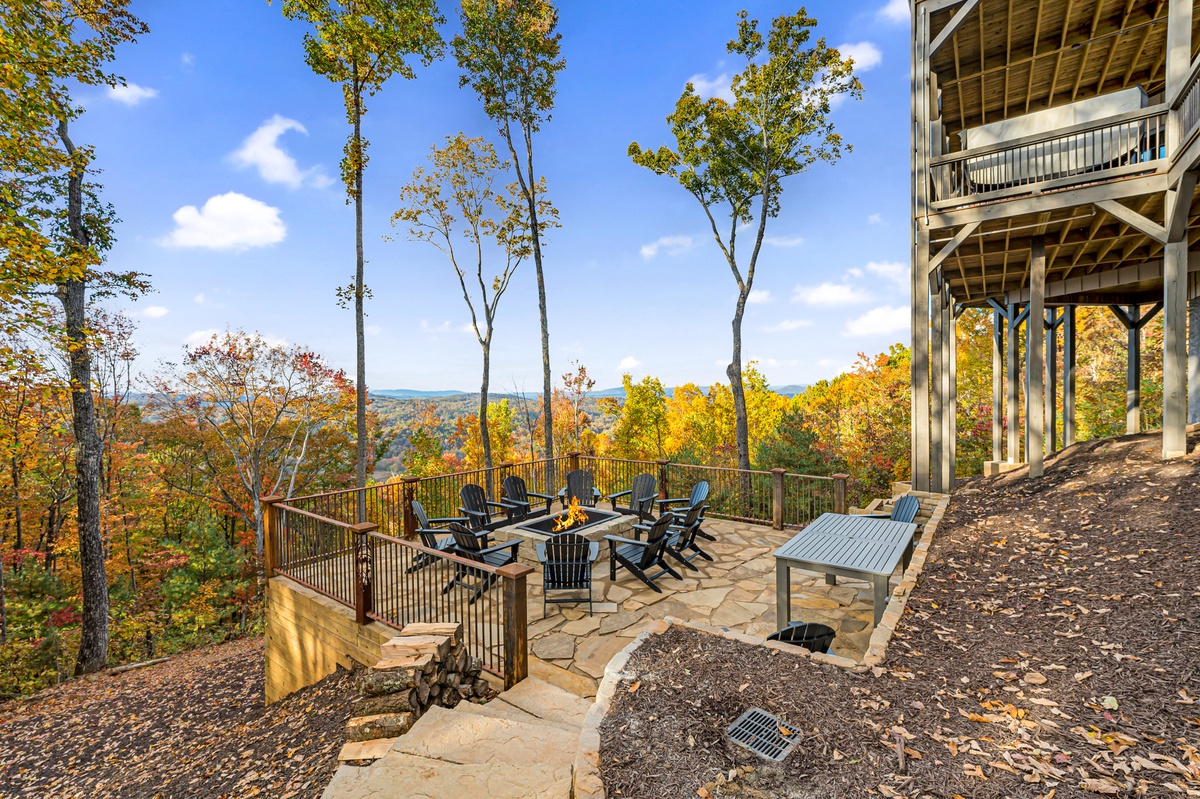- 25' x 20' flagstone deck with fire pit and seating for 10