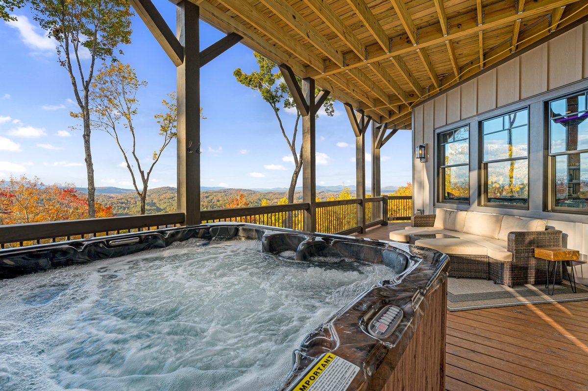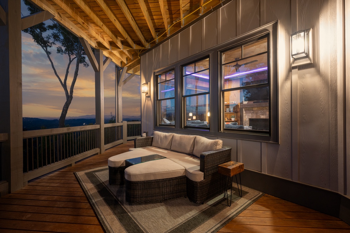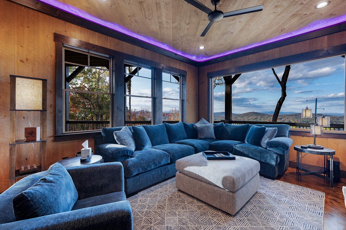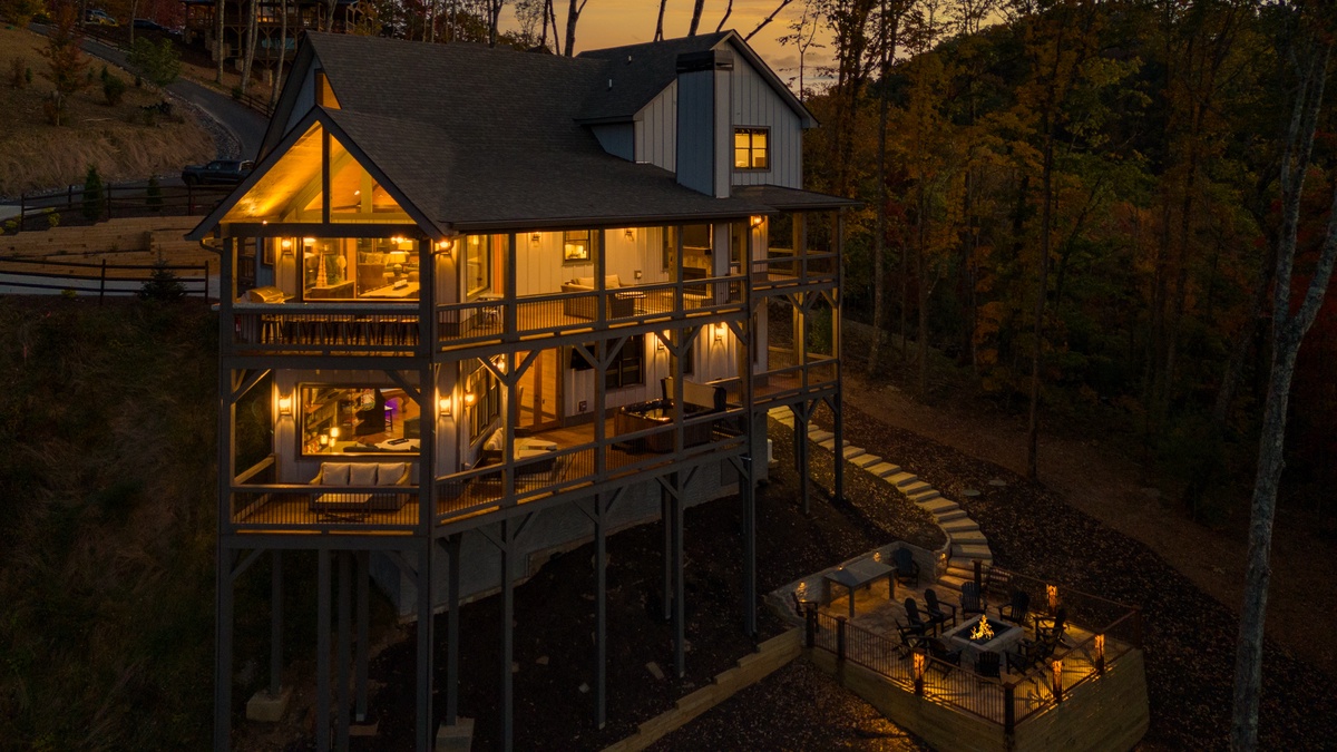 Tucked away in the estates of Blue Ridge Heights, Wine Down Ridge offers luxury and entertainment coupled with long range mountain views.