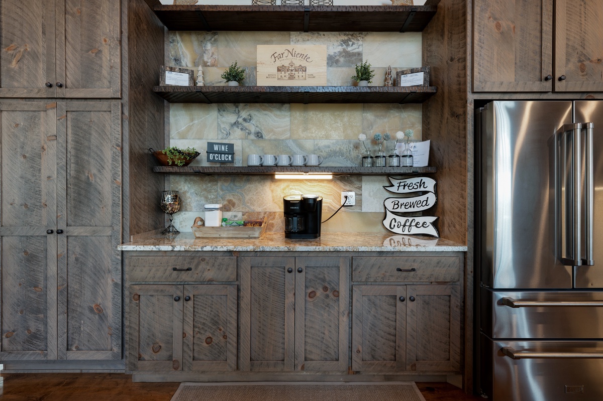 - Wet bar and full refrigerator with built in 17 bottle wine fridge