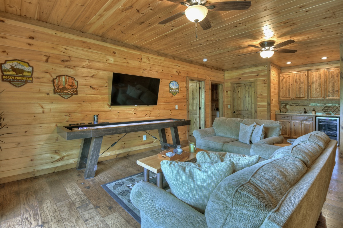Down to the lower level you'll find 2 bedrooms and an open living space to to get your game on. As you enjoy a round of cards or shuffleboard, grab your favorite beverage from the wet bar located in the living space.
