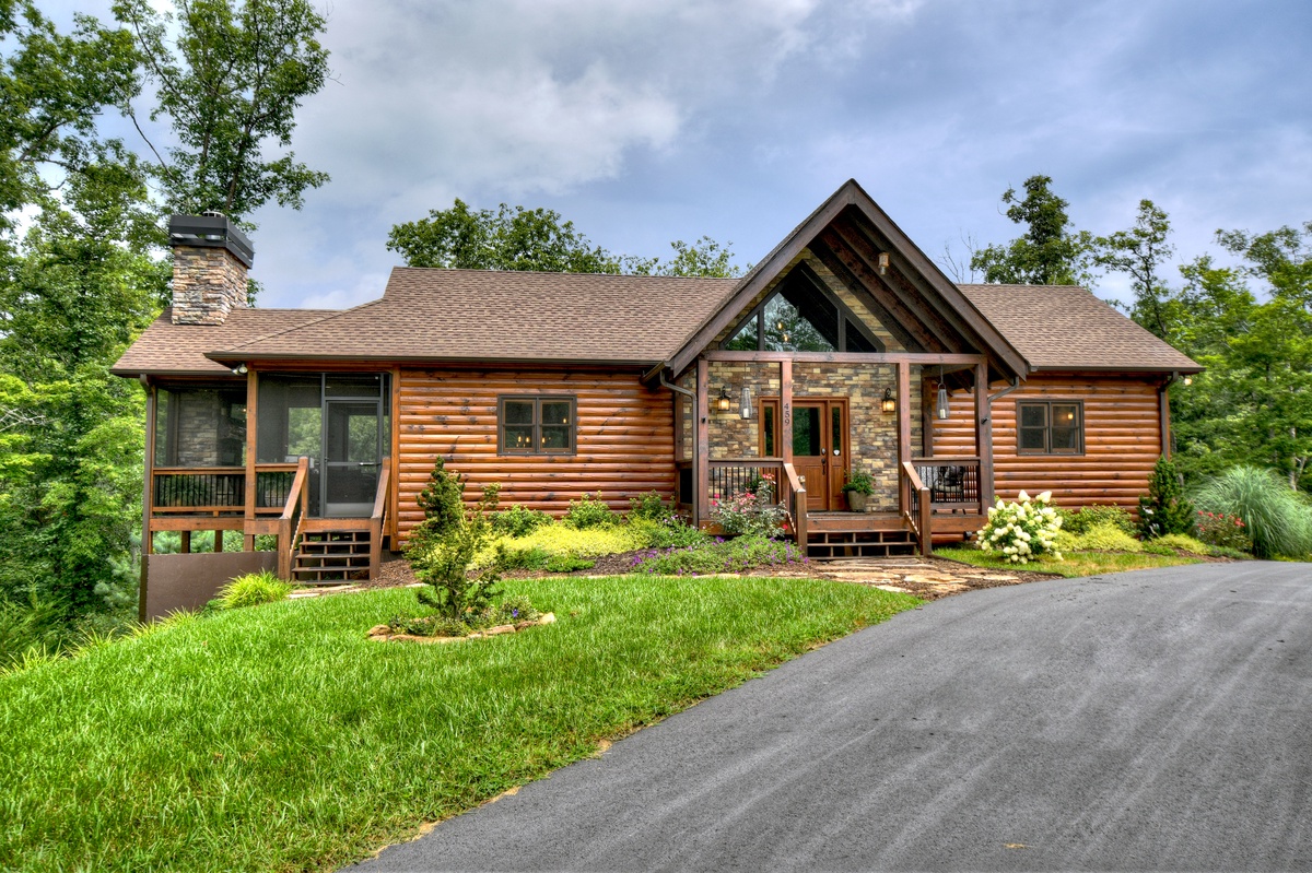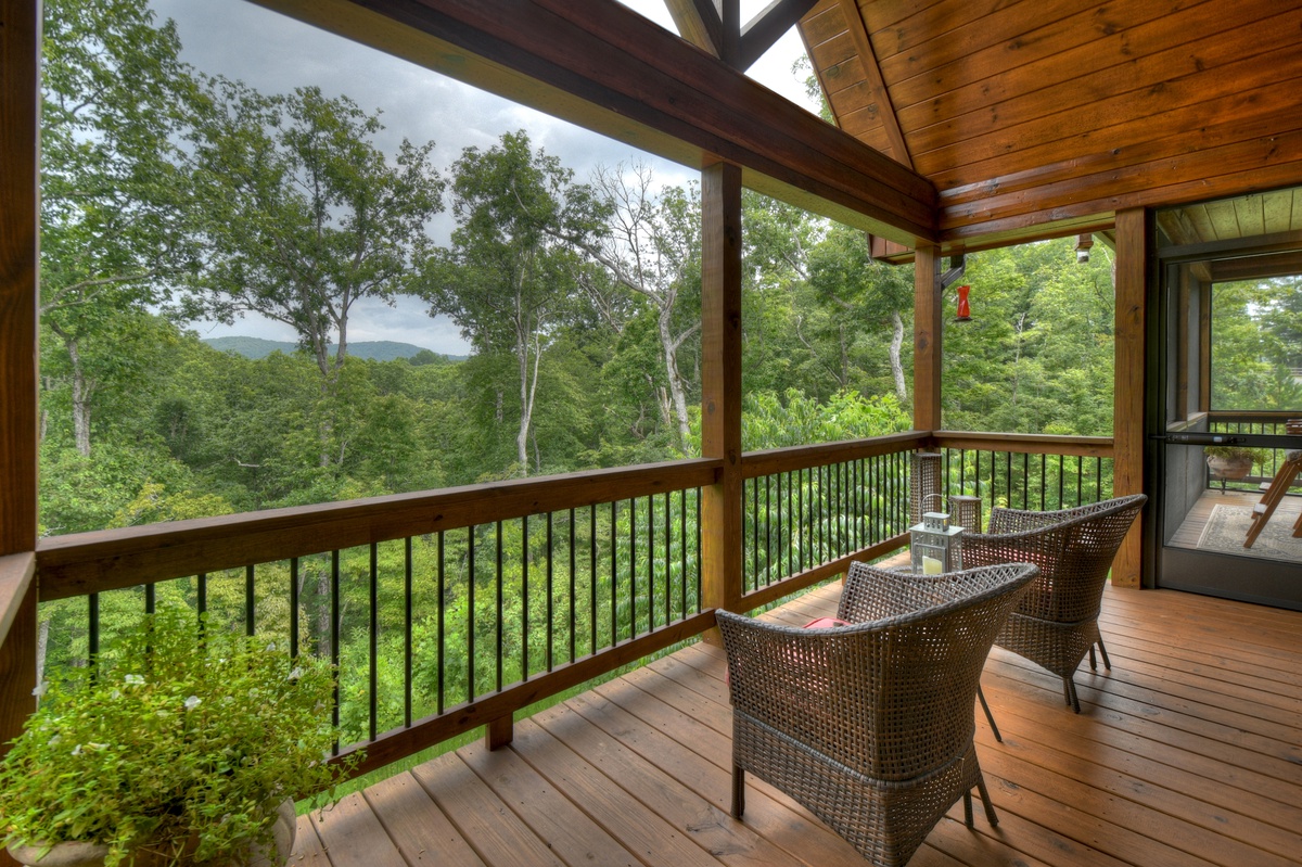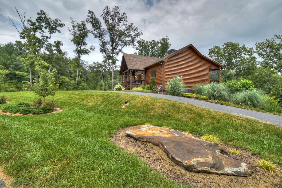 Woodsong is a beautiful mountain retreat located in an established upscale paved road community. Outside there is pristine landscaping, paved drive and gentle terrain surround you. A very unique feature to Woodsong is that you have your own hiking trail to a private stream. Enjoy the mountain view from the covered screened party porch with a fireplace and two levels of covered decks!