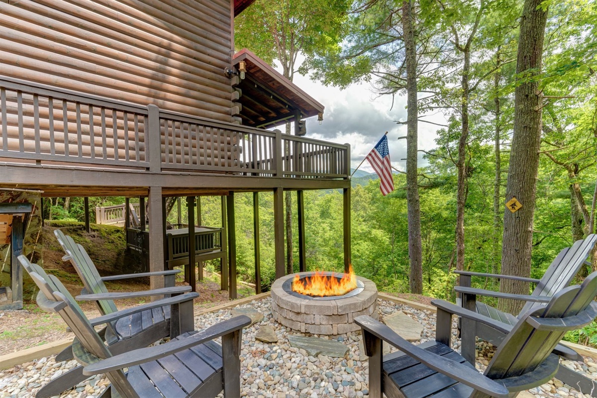 - Fire pit with 4 Adirondack chairs