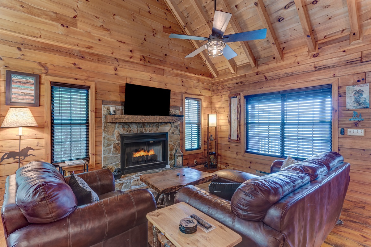 - Gas fireplace and 50” TV